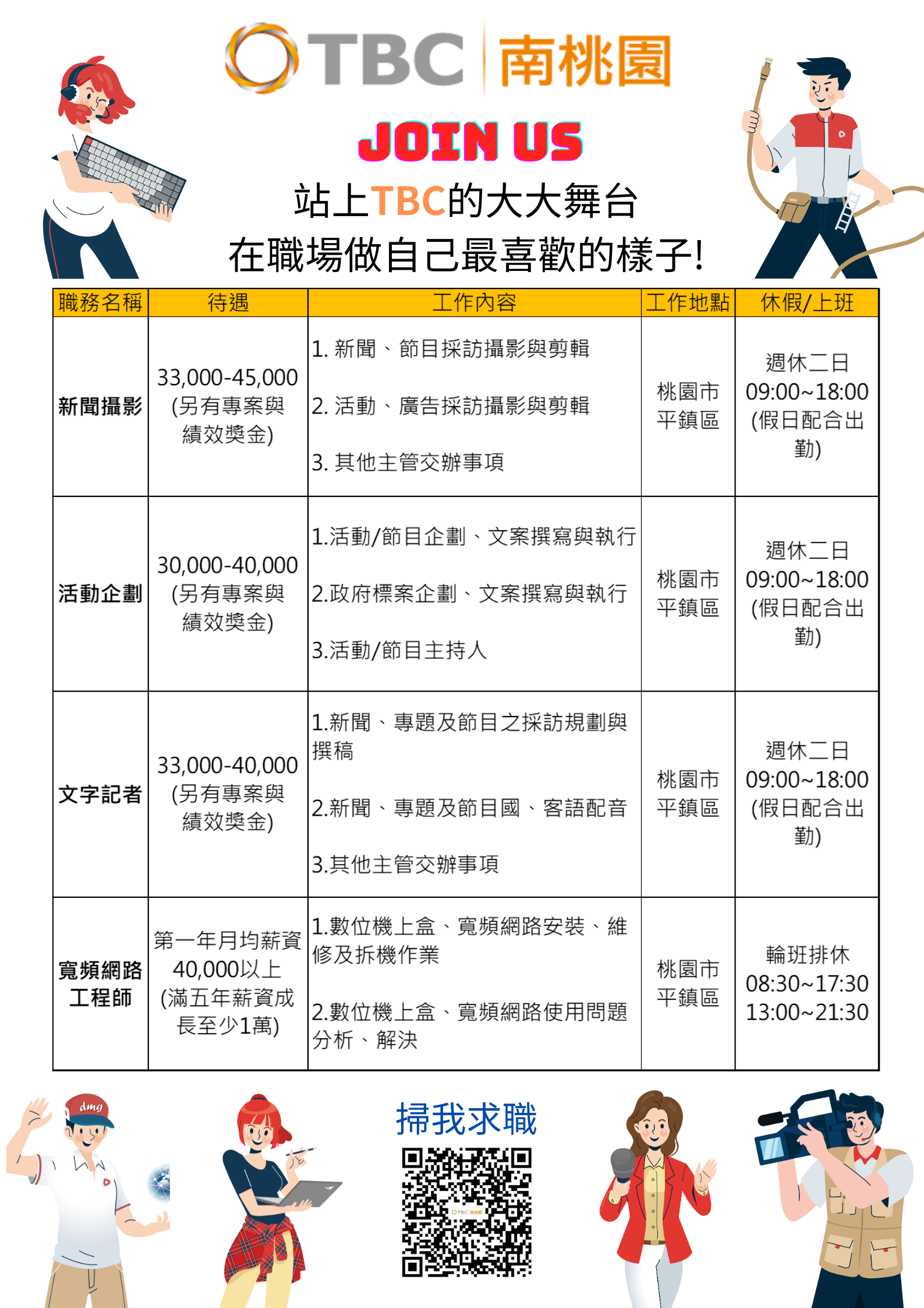【公告】南桃園有線電視股份有限公司 徵才公告