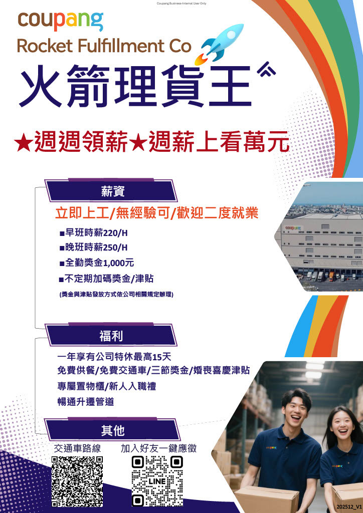 【公告】Coupang酷澎集團_火箭物流倉儲股份有限公司強力徵才中!