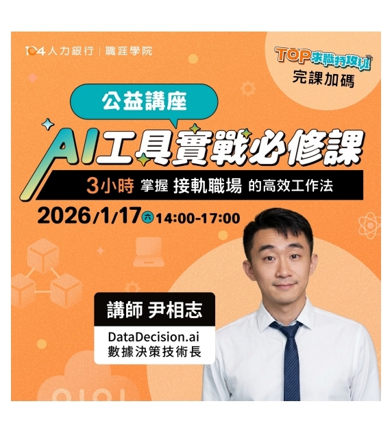 【免費講座】104人力銀行提供學生免費「AI工具實戰必修課」實體講座
