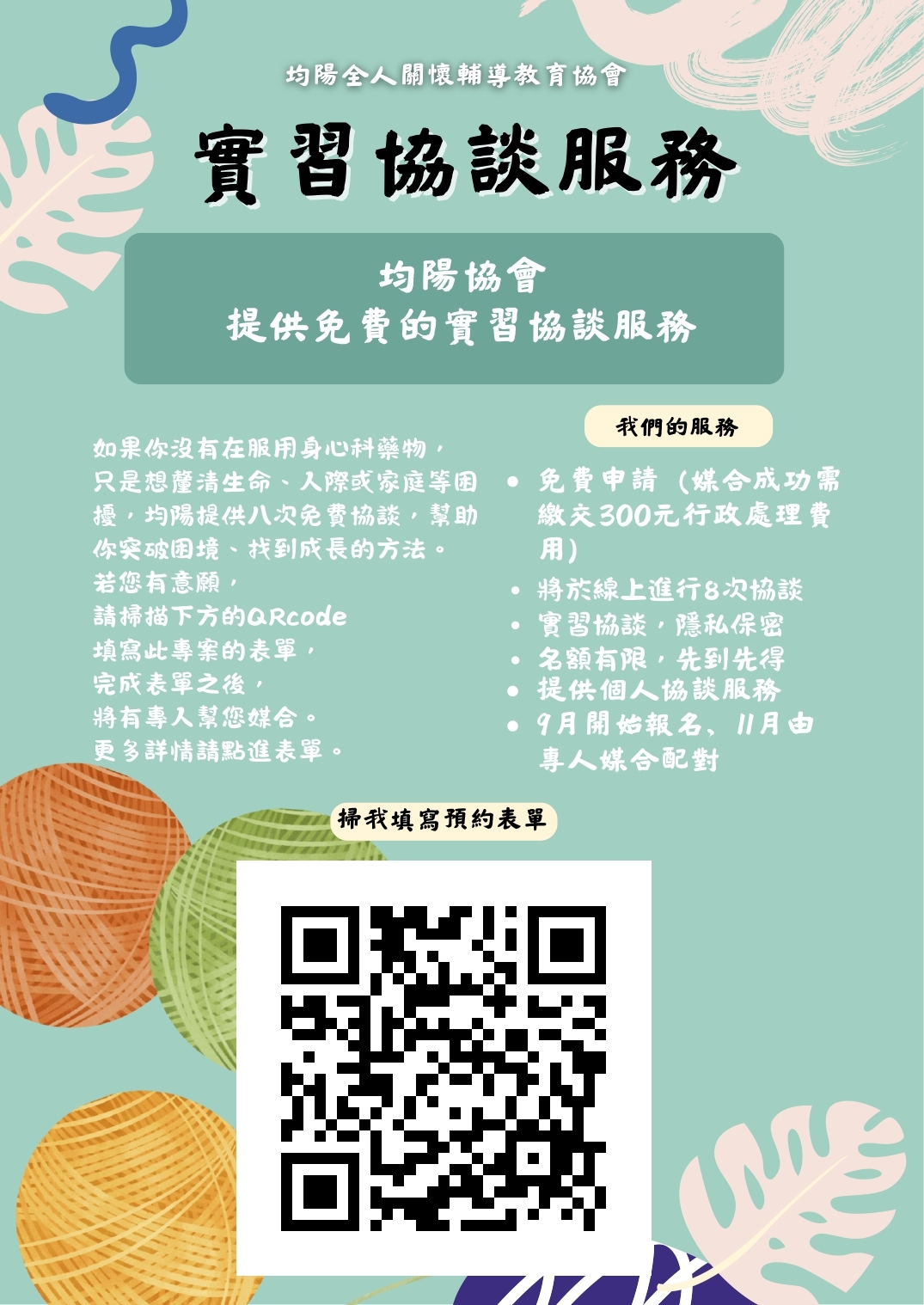均陽全人關懷輔導教育協會【敏實師生免費專案】實習協談服務