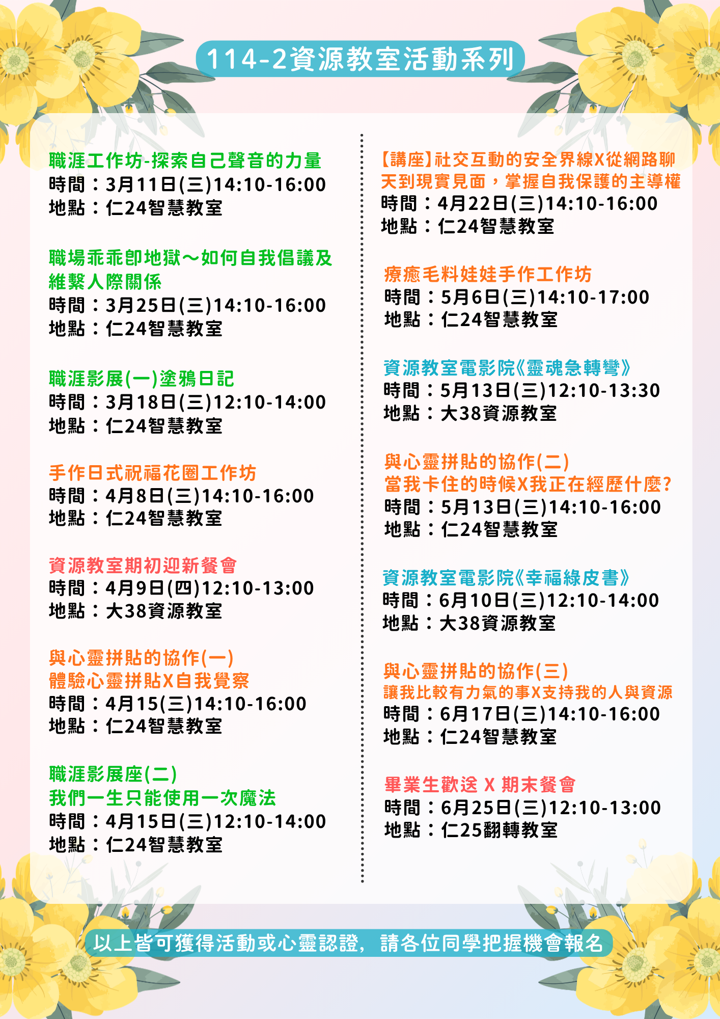 114-2 身心健康中心 活動一覽表